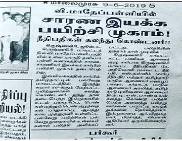 கிருஷ்ணகிரி, ஜூன் 9- கிருஷ்ணகிரி மாவட்டத்தில் வி.மாதேப்பள்ளி பகுதியில் உள்ள மாருதி தனியார் பள்ளி வளாகத்தில் சாரண சாரணியர் இயக்கம் சார்பில் பயிற்சி முகாம் நடைபெற்றது. இவ்வியக்கத்தில் சார்பில் தமிழ்நாட்டின் பல்வேறு மாவட்டத்தில் இருந்து சுமார் 50க்கும் மேற்பட்ட இவ்வியக்க பயிற்றுனர்கள் கலந்து கொண்டனர். 5 நாள் நடைபெற்ற இம்முகாமில் உடல் பராமரிப்பு, பெண்கள் மற்றும் பெண் குழந்தைகள் பாதுகாப்பு, ஆபத்து கால முதலுதவி உள்ளிட்ட பல்வேறு பயிற்சிகள் பல்வேறு துறைகளில் உள்ளவர்களால் பயிற்சி அளிக்கப்பட்டது. பயிற்சியின் 5ம் நாள் முடிவில் கிருஷ்ணகிரி மாவட்ட சட்ட பணிகள் ஆணைக்குழு சார்பாக கிருஷ்ணகிரி மாவட்ட நீதிபதிகள் கே.அறிவொளி (மாவட்ட நீதிபதி, தலைவர், மக்கள் நீதிமன்றம்), எஸ். தஸ்னீம் (சார்பு நீதிபதி, செயலாளர், மாவட்டசட்டபணிகள் ஆணைக்குழு) மற்றும் தமிழ்நாடு மாநில ஆணையர் மஹபூப்பாஷா, கர்நாடக மாநில ஆணையர் அரவிந்த், தமிழ்நாடு டிவிஷனல் ஆணையர் 14.6760. பாண்டியன் கலந்து கொண்டு, பயிற்சி பெற்ற அனைத்து பயிற்றுனர்களை பாராட்டி வாழ்த்துக்களை தெரிவித்தனர். மேலும் இம்முகாமை ஆர். விஜயகுமார், பிரசாந்த், விமலன் ஆகியோர் ஒருங்கிணைத்தனர்.